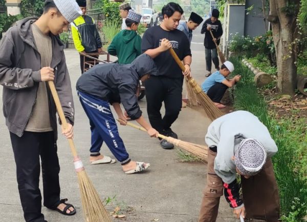 Foto ilustrasi: santri Amanatul Musthofa sedang bekerja bakti membersihkan lingkungan bersama warga.